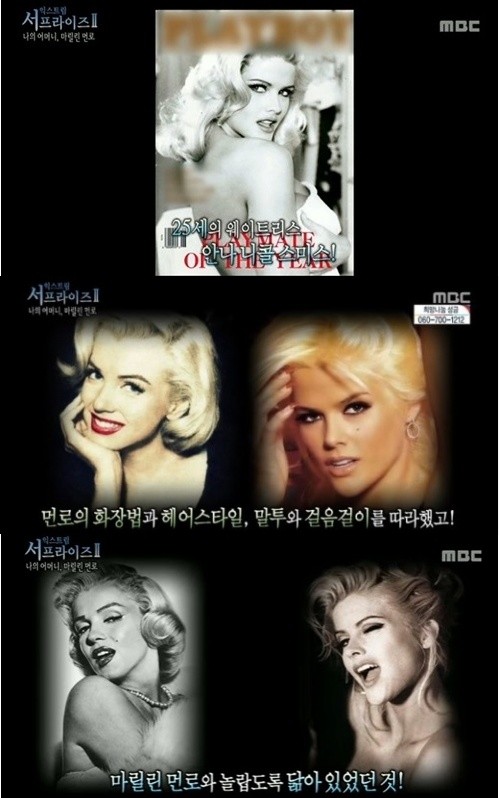 역대 플레이보이 모델 중 최고의 모델로 꼽히는 안나 니콜 스미스가 마릴린 먼로의 생애와 비슷해 놀라움을 자아냈다.19일 오전 방송된 MBC <신비한TV 서프라이즈>에서는 자신의 어머니를 마릴린 먼로라 생각한 플레이보이모델 안나 니콜 스미스의 삶이 소개됐다.