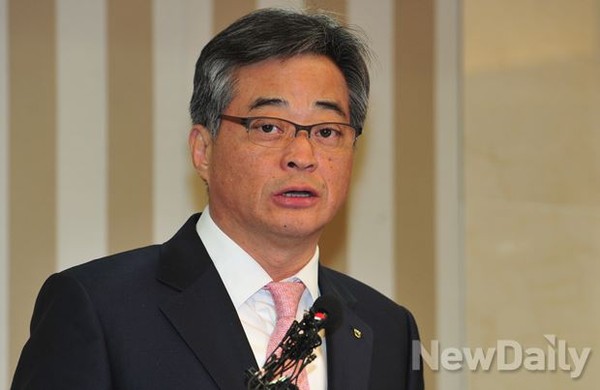 <손경익> NH농협카드 분사장이 20일 오전 서울 중구 코리아나호텔에서 열린 [개인정보 유출 관련 카드 3사 회견]에서 취재진들의 질문에 답하고 있다.