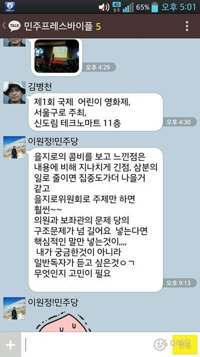 <프레스바이플> 기자들과의 카카오톡 그룹 채팅방을 통해