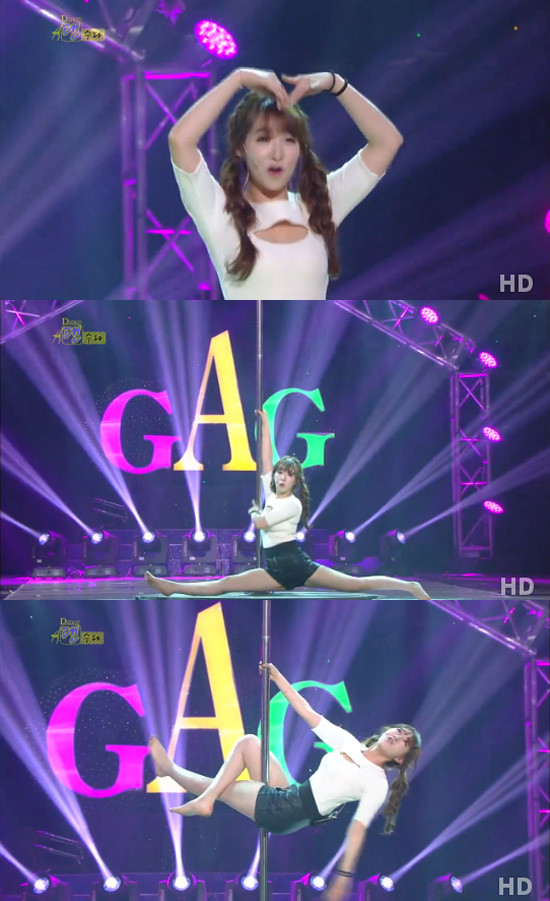 안소미는 지난 19일 방송된 KBS 2TV <개그콘서트>의 ‘댄수다’ 코너에서 아찔한 폴댄스를 선보였다.