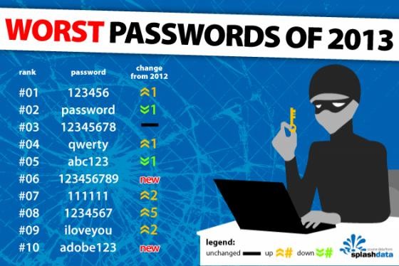 ‘123456’은 2011∼2012년에 2위였다가 이번에 1위로 올라섰으며, 2년 연속 1위를 차지했던 ‘password’는 이번 집계에서 2위로 내려앉았다.