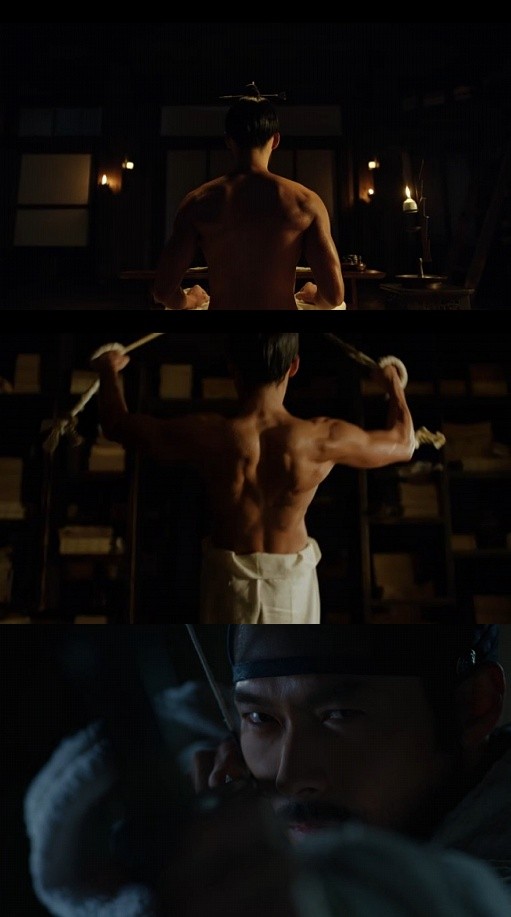 특히, 어두운 분위기 속에서 강한 카리스마를 내뿜는 현빈의 모습과 그의 탄탄한 등근육이 눈길을 사로잡는다.