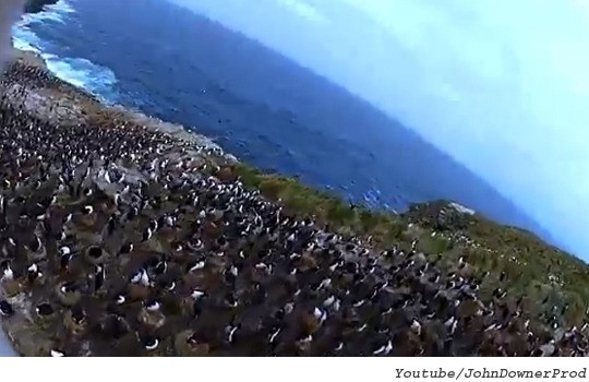 하늘은 나는 새의 시선으로 촬영된 '펭귄 영상'이 큰 관심을 모으고 있다.카메라맨 대신 매를 닮은 새가 촬영한 이 영상은 최근 동영상 사이트 유튜브를 통해 공개되면서 폭발적인 조회수를 기록하고 있다.해당 영상이 관심을 모으는 이유는 '새의 발'을 통해 촬영 되었다는 점이다.해당 영상이 촬여된 과정은 다음과 같다. 영국의 한 다큐멘터리 제작사는 실감나는 다큐를 촬영하기 위해 펭귄 군집 사이에 알 모양의 특수 카메라를 설치하게 됐다.하지만 이때 매를 닮은 새가 펭귄의 알을 훔쳐 먹으려다 우연히 펭귄들을 촬영하고 있던 카메라를 낚아 챘고, 해당 카메라는 그대로 매의 다리에 매달린 채 펭귄들의 모습을 찍게 된 것이다.한참을 새의 발에 걸려 하늘을 떠다니던 해당 카메라는 그렇게 수천 마리의 펭귄들의 모습을 담고 떨어졌다.해당 새 덕분에 펭귄 수천 마리가 모인 장관을 볼 수 있게된 것.한편, 해당 영상을 접한 네티즌들은 "와 진짜 대단하네" "어쩌다 이런일이?" "진짜 신기하네 신기해" "진짜 멋있다" "이런건 보기 힘들지" "우연도 이런 우연이?" 등의 반응을 보였다.[사진 출처=해당 영상 캡처]
