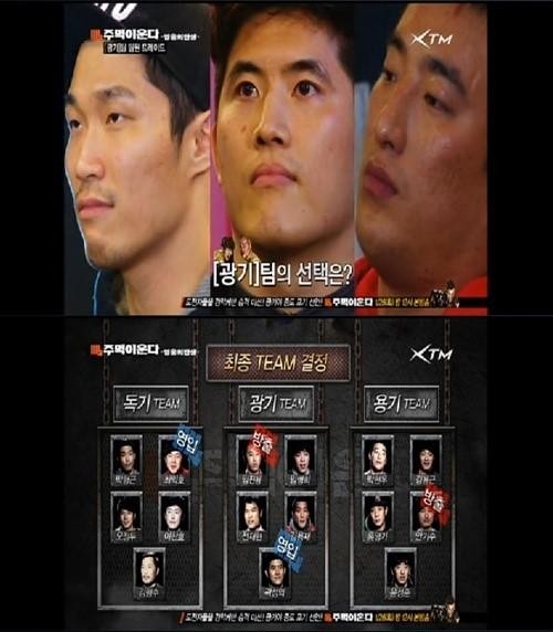 리얼 격투 서바이벌 <주먹이 운다>가 최종팀 결정전에 돌입했다.지난 21일 방송된 XTM <주먹이 운다–영웅의 탄생> 3화에서는 용기(서두원 이훈), 광기(육진수 뮤지), 독기(남의철 윤형빈) 세 팀이 최종팀 선발을 위한 1대1 서바이벌 배틀이 펼쳐졌다.