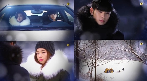 이어 도민준은 눈이 쌓인 산 속에서 천송이의 팔을 붙잡으며 "정말 내 대답이 듣고싶어서 여기까지 온거야?"라고 물었다.