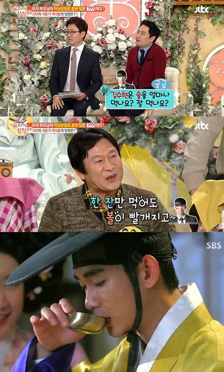 이에 MC 강용석이 김수현의 술버릇에 대해 묻자 김응수는 “김수현은 술 한 잔만 마시면 얼굴이 빨개진다. 그래도 잘 마시긴 잘 마신다”고 답했다.