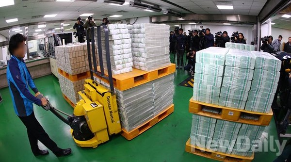 각 금융기관으로 보낼 설 자금을 방출하고 있다.