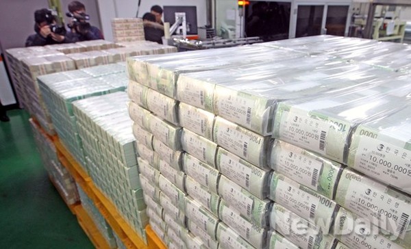 [포토]설 자금방출, 쌓여있는 지폐