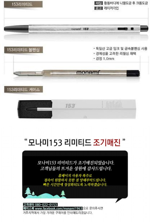 다행히 ‘모나미 153 한정판’을 구입할 수 있는 방법은 있다. 모나미 측은 현재 고객서비스센터를 이용해 고객에게 가장 가까운 구입처를 안내해 주는 서비스를 진행 중이다.