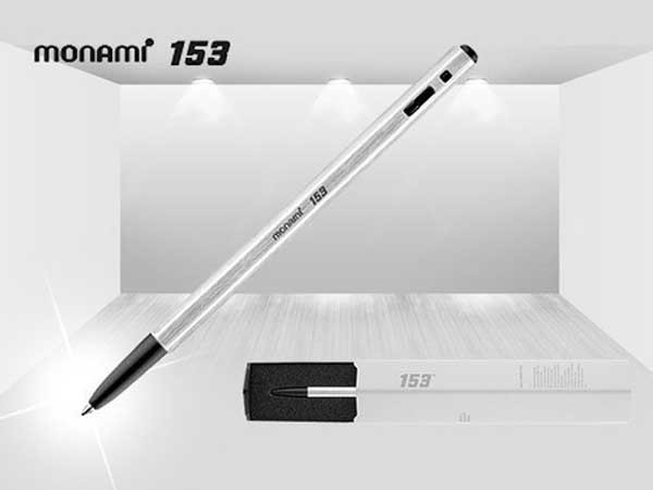 겉에는 레이저로 [모나미 153]이라는 문구가 각인돼 있다.볼펜심도 기존의 투명 플라스틱 볼펜심이 아니라