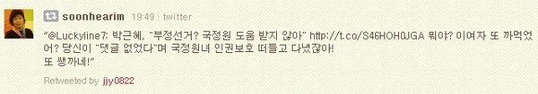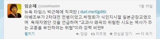 버젓이 자신의 트위터로 [리트윗]해 논란을 일으킨 인물.임순혜 전 위원은 23일 열린