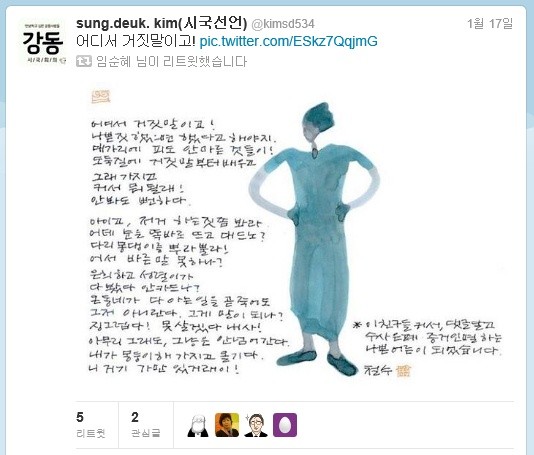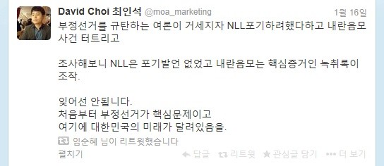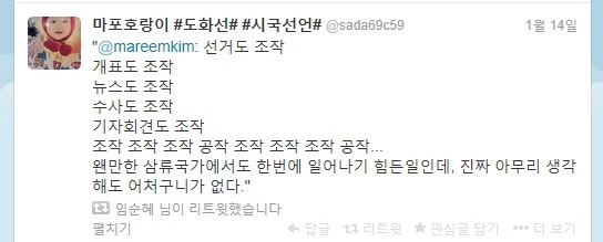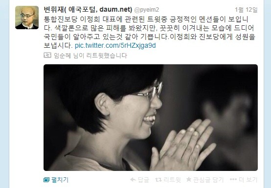 좀 전에 리트윗 했을때에는 이모씨의 사진과 멘션이 그대로 옮겨진 형태였다.이상에서 보는 바와 같이