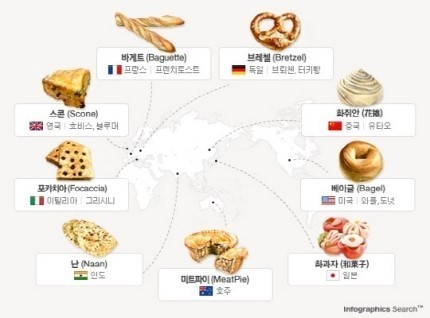 나라별 빵의 종류가 관심을 모으고 있다.최근 온라인 커뮤니티 게시판에는 "나라별 빵의 종류"라는 제목의 게시물이 게재됐다.글에는 세계지도 위에 9개 나라의 대표적인 빵이 소개되어 있는 사진이 담겨있다.구체적으로 '나라별 빵의 종류'를 살펴보면 스콘은 영국, 바게트는 프랑스, 브레첼은 독일, 포카치아는 이탈리아, 난은 인도,미밑트파이는 호주, 화과자는 일본, 베이글은 미국, 화쥐안은 중국 등이 나라별 대표하는 빵으로 소개됐다.한편, 나라별 빵의 종류 소식을 접한 네티즌들은 "아 스콘이 영국 거였어?" "오 신기하다" "우리나라는 빵이 아니니까" "한국은 떡이지" "떡이 더 맛있는데" "빵먹고 싶네" "브레첼이 맛있는데" 등의 반응을 보였다.[사진 출처=온라인 커뮤니티 게시판]