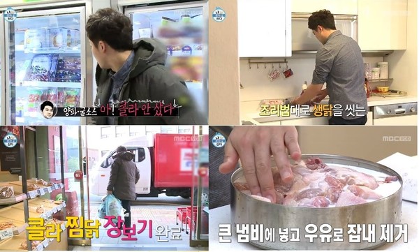일단 우유에 닭을 약 20분 담근 후 헹궈 소금과 후추, 청주로 밑간을 해둔다. 그 다음 여기에 콜라를 부어 한 소끔 끓인 후 알맞게 썰어둔 대파와 감자, 양파, 홍고추를 함께 익히면서 기호에 맞게 당면 등을 넣어주면 되는 간단한 레시피지만, 처음 요리를 하는 '혼자남'에게는 어렵게 다가왔던 것.
