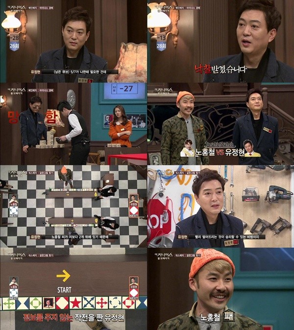 노홍철이 <더 지니어스2>에서 탈락했다.지난 25일 방송된 tvN 반전 리얼리티 쇼 <더 지니어스 시즌2: 룰 브레이커>(이하 더 지니어스2)에서 유정현이 이전에 보여줬던 모습과 달리 공격적인 플레이로 노홍철을 최종 탈락시켰다.