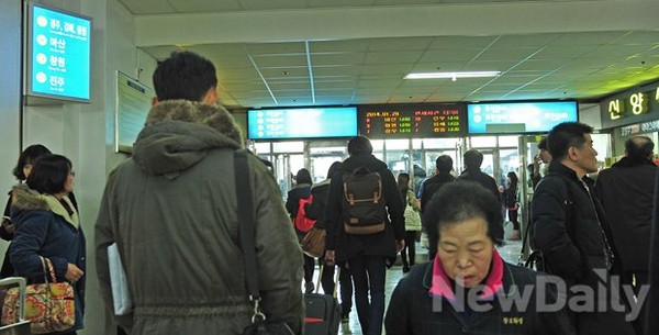 설 연휴를 하루 앞둔 29일 오후 서울 고속버스터미널이 고향으로 향하는 귀성객들로 북적이고 있다.