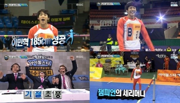 특히, 민혁은 185cm까지 가뿐히 뛰어넘으며 신기록을 수립했고, 성공 후 덤블링 세레모니로 자축했다.