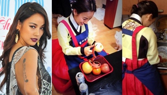 공개된 사진 속 이효리는 한복을 곱게 차려 입고 앞치마를 두른 채 과일을 깎고, 주방에서 설거지를 하는 모습이다. 이효리는 설을 맞아 남편 이상순의 서울 본가에 방문한 것으로 보인다.