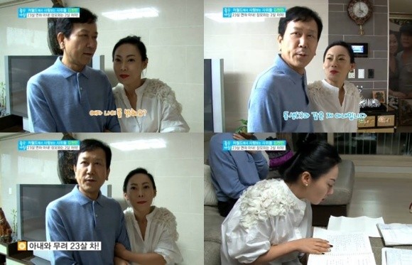 이날 김천만은 지난 2011년 23살 나이차를 극복하고 지금의 아내와 결혼하기까지의 에피소드를 털어놨다.