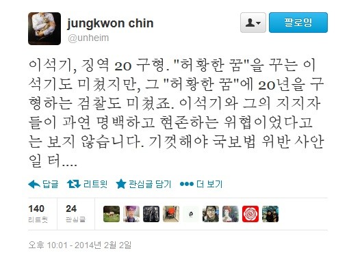 "[허황된 꿈]을 꾸는 이석기도 미쳤지만,