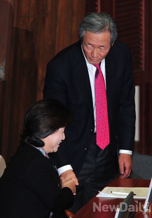 [포토]인사 나누는 '정몽준-심상정' 의원