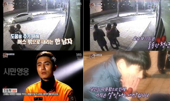 이를 지켜본 조동혁은 <심장이 뛴다> 인터뷰를 통해 “따뜻한 마음을 가진 분들이 참 많다는 생각이 들었다. 살맛나는 세상인 것 같다”며 남자의 선행에 감동받았음을 전했다.