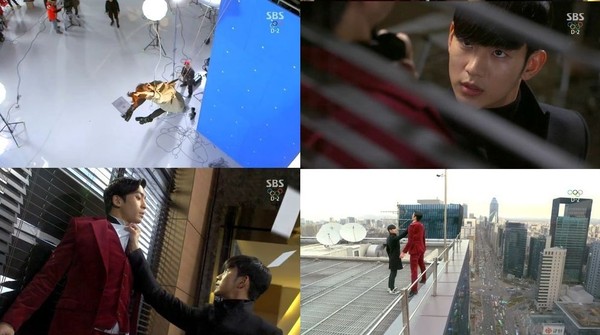 이날 방송에서 이재경의 비서(이이경)가 천송이(전지현)가 사용할 와이어를 조작했고, 이에 결국 액션 연기를 펼치던 천송이는 낙상 사고를 당하게 됐다.