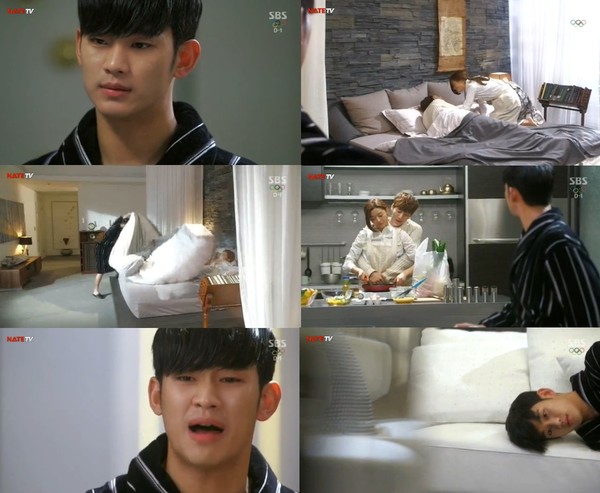 하지만 상상은 계속됐다. 화를 가라앉히기 위해 물을 마시려 주방을 찾은 도민준은 천송이가 이휘경을 위해 요리하는 모습을 상상했다.