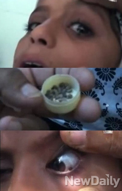 영상 속 소녀는 눈에서 돌이 나오는 희귀병을 앓고 있으며, 소녀의 눈에서 몇 시간 흘러나온 돌 눈물은 작은 박스 하나를 채울 정도다