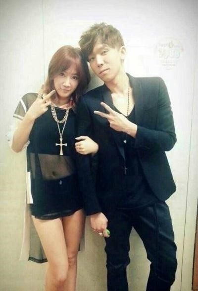 공개된 사진 속 소유와 정기고는 <뮤직뱅크> 대기실에서 팔짱을 낀 채 카메라를 향해 다정한 브이(V) 포즈를 취하고 있다.