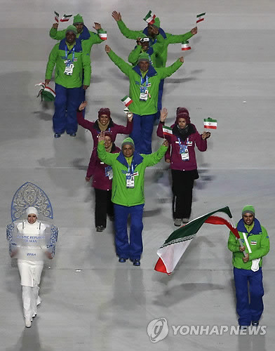 소치 올림픽에 참가한 이란 선수단이 종교적인 이유로 개막식 입장 도우미의 복장을 규제 당했다.AP통신의 보도에 따르면 8일 소치 올림픽 개막식에서 이란 선수단 입장 도우미만이 치마 안에 바지를 입은 것으로 알려졌다.이날 소치 올림픽에 나서는 88개국은 개막식에서 주최측이 선발한 러시아 여성 도우미의 안내를 받아 입장하게 돼 있었다.국가명을 적은 보드를 든 러시아 여성 도우미들은 모두 왼쪽 허벅지 쪽이 트인 하얀색 미니스커트를 입었다.하지만 이란을 안내한 도우미는 치마 안에 하얀색 바지를 입어야만 했다.일본신문 산케이스포츠는 "이란 도우미는 복사뼈까지 덮은 바지를 입으며 노출을 최소화했다"고 묘사했다.이슬람교가 국교인 이란은 여성의 신체 노출을 금기시 하고 있다.이란은 소치 올림픽 개막식을 앞두고 러시아에 "이란 선수단 앞에 설 러시아 도우미의 노출을 막아달라"고 요청했다고 전해진다.(사진=연합뉴스)