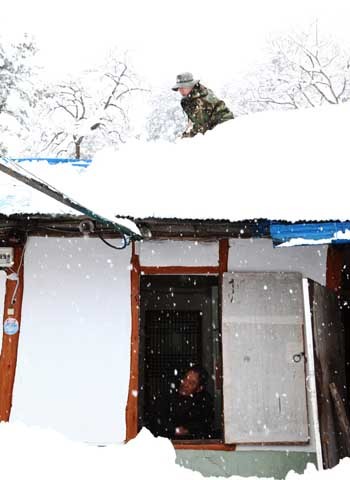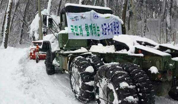 군이 제설작업을 지원해 달라고 당부했다.총리의 요청을 받은 <김관진> 국방장관은
