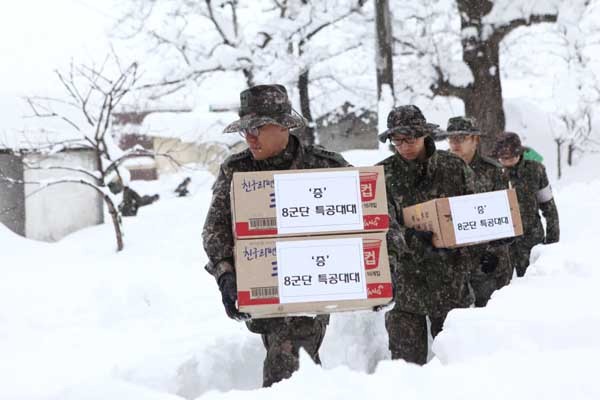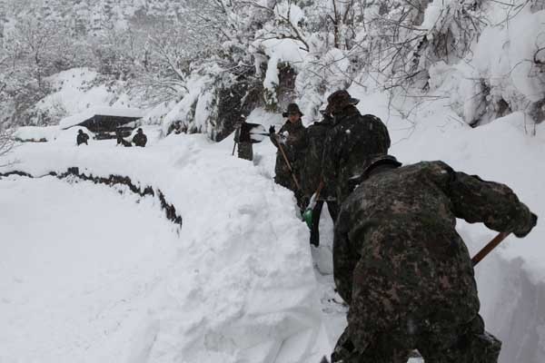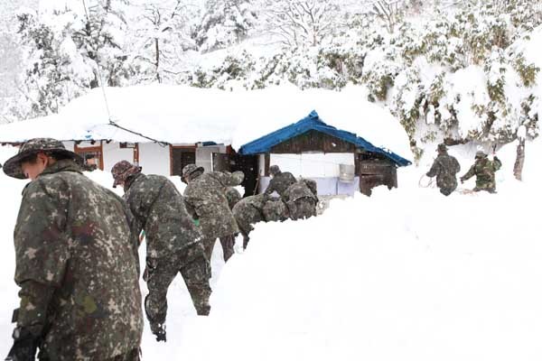육군은 9일 현재 폭설이 쏟아진 강원과 동해안 일대에