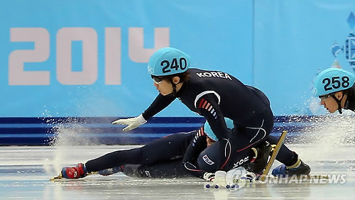 치열한 접전 끝에 신다운이 기수에 섰고, 그 뒤에 이한빈이 뒤따르는 등 한국으로서는 가장 이상적인 시나리오를 써나갔지만, 마지막 4바퀴를 남겨두고 신다운이 코너 부근에서 스케이트가 걸리는 바람에 넘어졌다. 바로 뒤를 따르던 이한빈 또한 무방비로 넘어지면서, 아쉬움을 남기는 듯했다.하지만 이한빈은 2010년 벤쿠버 동계올림픽 이후 국제빙상연맹(ISU)의 주도하에 이뤄진 어드밴스 룰에 의하여 결승 진출을 극적으로 따냈다. 바로 전 대회인 벤쿠버 올림픽 때까지 쇼트트랙 룰이 모호하여 실격이 다반사였고, 판정 시비가 끊이지 않았기 때문에 생긴 어드밴스 룰과 강력한 패널티는 이번 대회 한국에겐 호재로 작용했다.[사진 = 연합뉴스 / 넘어지는 신다운과 이한빈]
