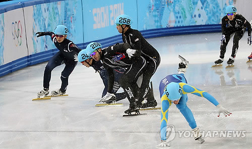 한국 남자 쇼트트랙 대표팀이 5,000m 계주 준결승에서 탈락했다.이한빈(26·성남시청)-박세영(21·단국대)-신다운(21·서울시청)-이호석(28·고양시청)이 순으로 이어 달린 남자 계주 대표팀은 13일 러시아 소치의 아이스버그 스케이팅 팰리스에서 열린 남자 5,000m 계주 준결승에서 6분48초206의 기록을 세웠으나 1조 3위로 상위 두 팀에게 주는 결승 진출 자격은 획득하지 못했다.네덜란드·미국과 치열하게 선두 다툼을 벌이던 대한민국은 네 바퀴를 남겨놓고 코너를 돌던 이호석이 중심을 잃고 넘어지는 바람에 순위가 크게 밀려났다.한국 쇼트트랙 남자 계주팀이 결승 진출에 실패한 것은 2002년 솔트레이크시티 동계올림픽 준결승에서 실격한 이래 12년 만의 일이다. 한국은 그간 역대 올림픽 남자계주에서 금메달 2개와 은메달 2개를 따내었다.한편, '쇼트트랙 황제' 안현수(29·러시아명 빅토르 안)를 포함한 2조의 러시아 남자 계주팀은 6분44초331의 기록으로 조 1위로 결승에 진출했다..안현수는 7바퀴를 남겨두고 이탈리아를 추월, 러시아를 2위로 끌어올린 데 이어 마지막 1바퀴를 남겨두고는 중국까지 추월하는 등 러시아 대표팀의 에이스 역할을 톡톡히 해냈다.(사진=연합뉴스)