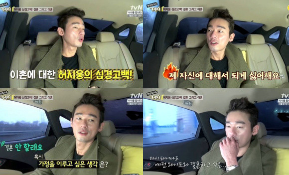 허지웅이 이혼 심경을 고백했다.허지웅은 13일 방송된 tvN '현장 토크쇼 택시'(이하 '택시')에 출연해 이혼과 결혼에 대한 자신의 솔직한 생각을 털어놨다.이날 허지웅은 "청첩장에 우리 세대 본이 되겠다고 했다. 본은 무슨. 내가 혐오스러웠다"며 "아내가 이혼하자고 할 때 무릎꿇고 빌었다. 동거기간까지 5년이었고 결혼하고 1년 넘었었다"고 말했다.이어 "난 다시 태어나도 전 와이프랑 결혼하고 싶다. 진짜 훌륭한 사람인데 내가 확실히 잘못한 것 같다"고 밝혔다.또한, 허지웅은 이혼 사유에 대해 "결혼 신고도 안 하고, 애도 안 낳겠다고 하니까 미래에 대한 희망이 안 보였던 것 같다. 같이 인생을 살아가는 비전이 안 보인 거다"고 설명했다.(허지웅 이혼 심경고백, 사진=tvN 택시 방송 캡처)