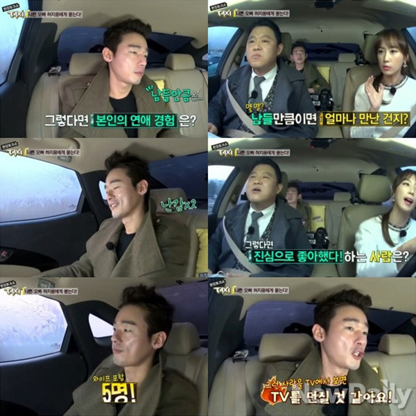 허지웅이 연애 경험 횟수를 고백했다.허지웅은 지난 13일 방송된 tvN 예능프로그램 '현장토크쇼 택시-뇌가 섹시한 남자' 편 에 출연해 솔직한 입담을 뽐냈다.이날 허지웅은 연애경험 질문을 받고 '남들만큼 사귀어봤다"고 답했다. 이어 "몇 명이나 사귀어봤냐?"는 MC 홍은희의 질문에 "그게 뭐가 중요하냐"며 난감한 모습을 보였다.그러자 MC 김구라는 "일반적으로 6~7명 아니냐"고 말했고, 허지웅은 "그럼 나도 그 정도 만난 것으로 하겠다. 방송에서 어디까지 이야기해야 할지 모르겠다"며 김구라의 대답에 묻어가려 했다.또한, 허지웅은 진심으로 좋아했던 사람은 몇 명이었냐는 질문에 "와이프를 포함해 5명이다"고 밝혔다.이에 MC 홍은희가 "그럼 그것보다 조금 부족했던 사람은 30명?"이라고 묻자 허지웅은 "그냥 좀 만났다"고 털어놨다. 김구라는 "좋아했던 여자의 6배수냐?"고 거들어 허지웅을 당황하게 만들었고, MC들의 집요한 추궁에 그는 "30명 이상"이라고 말했다.(허지웅 연애경험 횟수, 사진=tvN 택시 방송 캡처)