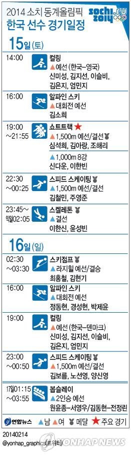 남자 1000m 8강전 및 결선(오후 7시43분) 신다운 이한빈스피드스케이팅 남자 1500m(밤 10시30분) 김철민 주형준