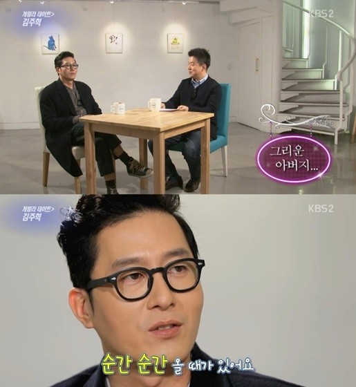 배우 김주혁이아버지에 대한 그리움을 전했다.15일 방송된 KBS 2TV [연예가중계]에서는[해피선데이-1박 2일]로 떠오르는예능 대세가 된 김주혁의 게릴라 데이트 모습이 그려졌다.이날 김주혁은 배우 겸 그의 아버지인 고 김무생을 떠올리며이렇게 말했다."특정한 때가 아닌 순간 순간 아버지가 생각나곤 한다.아버지가 만일 '1박 2일'을 보셨다면,주말에 그걸 왜 하느냐'고 하셨을 수도 있고,매주 나를 방송에서 볼 수 있다는 즐거움을 느끼셨을 수도 있었을 것이다"또한 "만일 1박2일이 2박3일이었다면 어땠을 것 같냐"는 질문에그는 1초의 망설임 없이 이렇게 말해 웃음을 자아냈다."무리다. 지나치다. 1박 2일도 미치겠다."