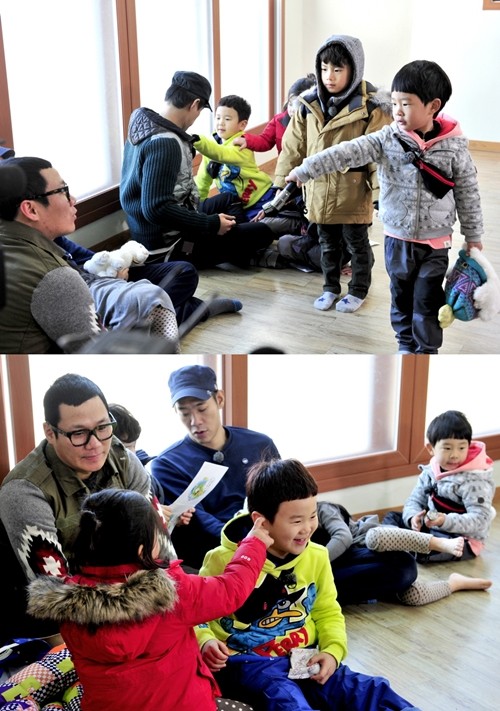 '아빠 어디가2' 여섯 아이들이 아빠와 함께 도레미송에 도전한다.16일 방송되는 MBC '일밤-아빠 어디가'에서는 충북 옥천군 장고개 마을에서 하루를 보내는 여섯 아빠와 아이들의 모습이 공개된다.이날 아이들은 식사를 마친 후 각자 집으로 흩어져 아빠와 '도레미송'을 배우는 시간을 가졌다. 평소 노래를 가르쳐본 적 없는 아빠들은 난감해 하는 반응이었다. 직접 노래를 불러가며 알려주는 아빠가 있는가 하면, 정작 아빠가 노래를 못해서 진도를 못 나가는 경우도 있었다.빈이는 노래와 함께 깜찍한 안무를 선보이며 아빠를 사로잡았고, 민율이는 거듭된 실수로 웃음을 자아냈다. 또한, 리환이는 아빠 없이 홀로 연습을 택했다.노래 배우기를 마친 후, 여섯 가족은 한 음계씩 맡아서 '도레미송' 부르기에 도전했다. 가수 아빠에게 노래를 배운 큰형 윤후부터 수줍은 5살 막내 김규원까지 합창에 앞서 들뜬 모습이었다.한편, 다함께 도레미송을 배운 후 여섯 가족은 새해를 맞이하여 묵은 때를 벗겨내기 위해 목욕탕을 찾았다. 아빠와 아이들은 서로 때를 밀어주고 머리를 감겨주며 즐거운 시간을 보냈다. 큰 형 윤후는 직접 아빠 등을 밀어줘 다른 아빠들의 부러움을 샀다.'아빠어디가2'는 2월 16일 오후 4시 55분 방송된다.(아빠어디가, 사진=MBC)