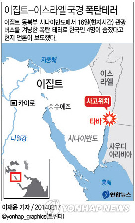 16일(현지시각) 이집트 동북부 시나이반도에서 한국인 여행객이 탄 광광버스가 폭탄 테러를 당해 최소 4명이 숨진 것으로 드러났다.