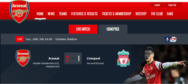 아스날은 16일 저녁(이하 현지시간) 홈 구장인 에미레이츠 스타디움에서 리버풀을 상대로 2-1 승리를 거뒀다. 지난 8일 전, 앤 필드 로드에서 1-5 대패를 완벽히 갚지는 못했지만, 안정된 경기력을 보여줬다. 경기의 수훈갑은 1골 1도움을 기록한 옥슬레이드 챔벌레인. 포돌스키도 원샷원킬을 뽐내며 2-0으로 달아나는 추가골을 기록했다. 골키퍼인 우카시 파비안스키는 적재적소의 선방을 보여주며 팀의 숨은 공신으로 우뚝섰다.