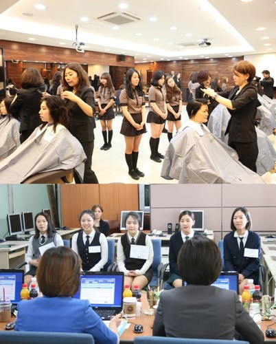 스태프가 받는 2년간의 교육을 강의실과 실제 살롱에서 실습을 통해 실시한다.<경인여대 아이벨르 헤어과> 봉수완 졸업생은