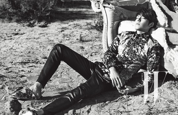 김우빈이 모하비 사막에서 찍은 화보가 공개됐다.18일 패션매거진 '더블유 코리아'는 최근 미국 모하비 사막에서 진행된 김우빈의 화보 일부를 공개했다.사진 속 김우빈은 광활한 사막 한 가운데서 마치 한 편의 영화를 보는 듯한 착각을 불러일으키는 포스를 내뿜고 있다.화려한 패턴이 돋보이는 셔츠와 가죽 바지로 멋을 낸 김우빈은 소파에 기대어 눈을 감은 채 사막의 강렬한 태양을 온 몸으로 받고 있다. 특히, 그는 우월한 기럭지와 훈훈한 외모를 자랑해 여성 팬들의 마음을 사로잡는다.김우빈 모하비 사막 화보를 접한 네티즌들은 "한 마리의 하이에나 같아", "김우빈 모하비 사막 화보 와 진짜 길긴 길다", "김우빈 너무 좋아", "주연 드라마 하나 찍자!", "와 사막에서도 포스 쩌네" 등의 반응을 보였다.한편, 김우빈의 화보는 '더블유 코리아' 3월호에 12페이지에 걸쳐 공개되며, 더블유 공식 페이스북 계쩡을 통해 책에 실리지 못한 B컷이 공개될 예정이다.[김우빈 모하비 사막 화보, 사진 출처=더블유 코리아]