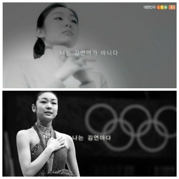 "너는 김연아가 아니다. 너는 4분 8초 동안 숨죽인 대한민국이다. 너는 11번을 뛰어오르는 대한민국이고 너는 세상에서 가장 아름다운 대한민국이다. 너는 1명의 대한민국이다. 대한민국이 대한민국을 응원합니다."