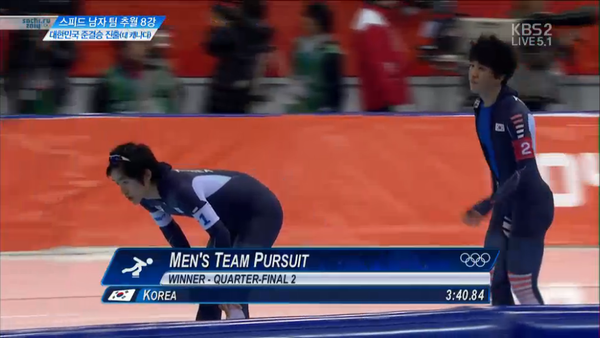 처음 두 바퀴는 러시아가 앞서갔지만, 세 바퀴로 접어 들면서, 한국 스피드스케이팅의 진가가 드러났다. 우리나라는 시종일관 안정적인 자세와 페이스 조절로 세계 2위의 면모를 어김없이 보여주며 결승선을 통과했지만, 러시아는 선수들이 서로 모래알처럼 흩어지면서, 자멸했다.