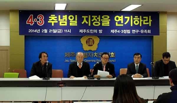 [제주 4.3 국가추념일 지정]에 반대하는 기자회견을 가졌다.이어 21일에는 제주도민들이 모여 [제주 4.3 국가추념일] 지정을 연기하라고 촉구했다.