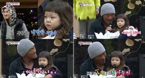 이후 추성훈은 동요 '산토끼'를 선택한 뒤 추사랑에게 마이크를 쥐어 주었다.