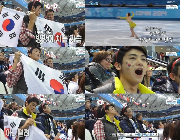 '소치에 가다' 박형식과 서경석이 '피겨 여왕' 김연아의 연기에 감탄을 금치 못했다.23일 방송된 MBC 소치 동계올림픽 특집 프로그램 '진짜 사나이, 소치에 가다'에서는 소치로 떠나 한국 선수들을 응원하는 서경석, 박형식의 모습이 전파를 탔다.이날 서경석과 박형식은 피겨스케이팅 김연아 선수의 쇼트 프로그램 경기 응원에 나섰다.이날 김연아는 쇼트 프로그램에서 '어릿광대를 보내주오' 음악에 맞춰 완벽한 연기를 선보였다.이들은 김연아의 연기를 보며 내내 감탄사를 연발하며 놀라움을 감추지 못했다. 특히, 박형식은 보는 내내 집중하느라 벌어진 입을 다물줄 몰라 보는 이들을 폭소케 했다.박형식은 "선 하나하나가 예술이다. 차원이 다르다"며 극찬을 아끼지 않았고, 서경석 역시 "예쁘다. 한 동작도 버릴 것이 없다"며 감탄했다.경기가 끝난 후 김연아가 받은 박한 점수 소식에도 박형식은 "역시 아름답다. 정말 자랑스럽다"고 말하며 응원했다.[사진 출처=MBC 소치에 가다 방송화면 캡처]