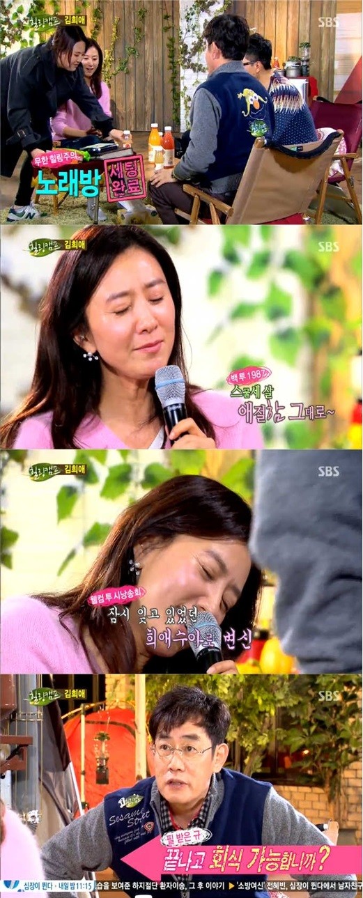 이를 보던 이경규는 "오랜만에 들려주실 수 있냐"고 요청했고, 제작진은 급히 김희애 앞으로 노래방 마이크를 세팅해 김희애를 당황케 만들었다.